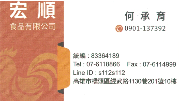 近年來宏順食品除了在固有專業技能持續成長之外,對於我們的企業文化、流程SOP、包裝運送、客戶關係,乃至資訊分享、電子化服務等等,都維持與時俱進的能力。若您透過網路媒介找到我們,歡迎善用我們的聯絡資訊;若您是老主顧,也請不吝在我們的詢價留言表單簡明寫下您的需求或意見。
